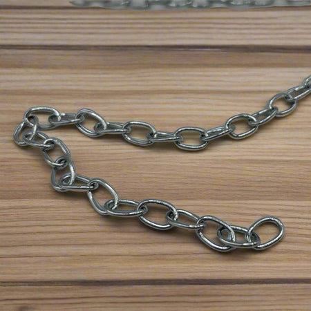 Oval Chain can be used for lightweight, decorative purposes such as for hanging lights, pictures and mirrors. Sometimes used in plumbing assemblies.
