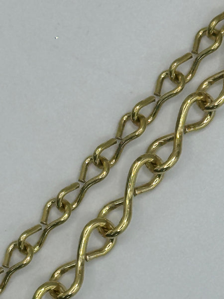 Jack Chain is recognised by its figure-of-eight shaped links. It is often used to suspend light fixtures such as hanging baskets, lights, signs, flower pots and general utility purposes where high strength is not the priority.