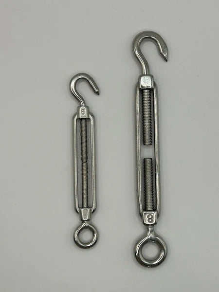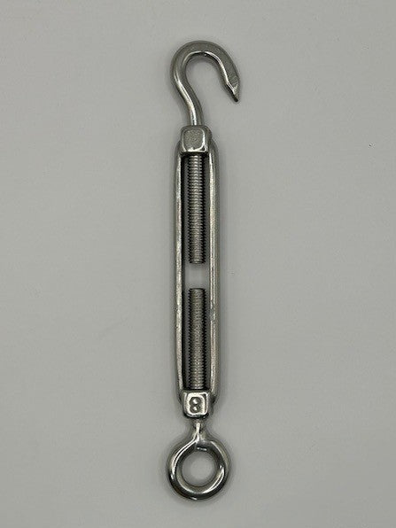 Used for adjusting the tension or length of ropes, cables, tie rods, and other tensioning systems. Easy to use, the tension is adjusted by rotating the frame without twisting either the eye bolts or cables/ropes attached.