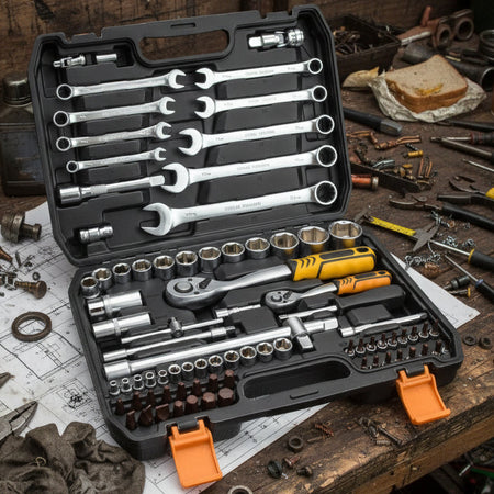 82pc, 1/4in & 1/2in Drive Metric Socket, Bit & Wrench Set in Case