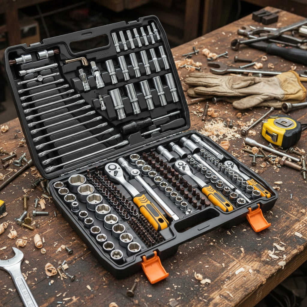216pc 1/4in, 3/8in & 1/2in Drive Metric Socket, Bit, Wrench & Hex Key Set in Case